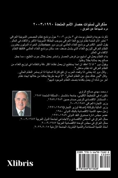 "درء المجاعة عن العراق ، مذكراتي لسنوات حصار الأمم المتحدة ١٩٩٠-٢٠٠٣ ذكرت جريدة واشنطن بوست في 3 مارس 2003: حول برنامج الغذاء العراقي نظام الحصص التموينية "" تعتبر الام المتمة نظام توزيع الغذا العراقي بموجب البطاقة التموينية الاكبر والاكفاء في العالم . يقول الخبير الاقدم في برنامج الغذاء العالمي توربو دوو Torbenبان الخبراء الدوليون يعدون النظام العراقي الذي يشمل ضعف عدد سكان برنامج الغذاء العالمي WFP النظام الاكفاء في العالم. يعمل في أسابيع من فرض الحصار واستمر يعمل خلال حرب الخليج ، مما جعل صالح يعد بمثابة بطلا وطنيا. ويقول دوو " انا لا اعتقد ان احدا يستطيع ان يعمل نظاما اكثر دقة وانتظاما في توزيع الغذا في الاوقات المحددة من النظام العراقي انه نظام مدهش."". . وقال دوو إنه يخشى اذا وقعت الحرب ان تقع كارثة انسانية اذا لم يستمر النظام الحالي.. وقال ""ليس هناك بديل عن النظام الحالي"". ""لا توجد طريقة يمكننا من خلالها ايجاد نظام آخر من شأنه أن يعمل نصف النظام الموجود لديهم"". د.محمد مهدي صالح الراوي دكتوراه في التخطيط الاقليمي، جامعة مانشستر ، المملكة المتحدة ١٩٨٧ - المستشار الاقتصادي للرئيس صدام حسين ١٩٨٢-١٩٨٧ وزير التجارة العراقي ١٩٨٧-٢٠٠٣. وزير المالية بالوكالة (اضافة لوزير التجارة)١٩٨٩-١٩٩١ زميل معهد التنمية الاقتصادية بالبنك الدولي ،١٩٩٠. عضو مجلس ادارة صندوق النقد الدولي ١٩٨٩-١٩٩١، ممثل العراق في المجلس الاقتصادي والاجتماعي لجامعة الدول العربية ١٩٨٧-٢٠٠٣ ممثل العراق في مجلس الوحدة الاقتصادية العربية ١٩٨٧-٢٠٠٣ أستاذ التنمية المستدامة ، الجامعة الأردنية ٢٠١٥-٢٠٢٢"