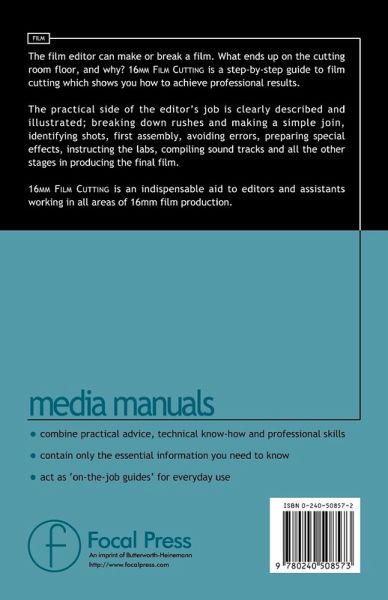 What ends up on the film cutting room floor, and why? This work shows you how to achieve professional results. It describes the breaking down rushes and making a simple join, identifying shots, first assembly, avoiding errors, preparing special effects, instructing the labs, compiling sound tracks and other stages in producing the final film.