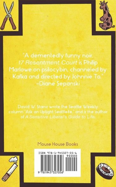 A professor is dead. So is the prep guy at East Sea Sushi. A darkly whimsical crime thriller, 17 Resentment Court zips along through the alleys, bike paths, fancy homes, and corporate offices of the Northwest metropolis of Plankton. A newcomer to the city, Pope Smith arrives with a broken heart and a bloodshot eye, a souvenir from an angry husband. "I offered to let him hit me in the face. I didn’t know he would be so good at hitting." Controlling his emotions through the practice of Business Yoga, and taking a job as a low-level grunt for a private detective, Pope soon finds himself impersonating his employer and doing a bit of burglary—an experience that fills him with bitchy disdain for the level of criminal sophistication in Plankton. "Not that I’m a criminal myself," says Pope. "Sure, I used to be part of what you might technically call a ‘burglary ring.’ But that’s a misleading term." Pope’s connection with the murders is complicated by the arrival of his former burglary ring comrades, who are convinced he’s withholding a pile of cash. With the occasional assistance of a skeptical office supply thief named Brenda, Pope tries to bullshit his way out of trouble as he finds himself increasingly unpopular with everyone he meets. Possibly because of his poor manners and bloodshot eye. "I doubt it though," says Pope. "Nothing but a bunch of cold fish in this town." Situated firmly in the tradition of classic crime fiction, the novel delivers all the easy-to-read satisfactions of the genre while also appealing to the adventurous readers of Haurki Murakami, Neil Gaiman, Alice Hoffman, and Lorrie Moore. "A dementedly funny noir, 17 Resentment Court is Philip Marlowe on psilocybin, channeled by Kafka and directed by Johnnie To." –Diane Sepanski David W. Stoesz wrote the popular Seattle Weekly column "Ask an Uptight Seattleite," and is the author of A Sensitive Liberal’s Guide to Life (Gotham, 2010). See davidwstoesz.com for buying and contact info. Local indie publisher Mouse House Books specializes in humor, crime, sports, and various combinations thereof. Their CEO is a dog. More at mousehousebooks.com.