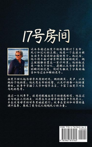 《17号房间》是一部感人至深的小说,通过主人公拉斐尔的视角探讨生命、死亡与记忆的主题。在波士顿生活多年的他返回法国,面对即将离世的母亲,并在诊所的病床前展开了一段情感的回溯之旅。回忆、遗憾与母子之间的深情交织,文学与哲学名言穿插其中,带领读者深入思考生命的脆弱与爱的永恒。 本书通过多个章节展现拉斐尔在过去与现实之间的穿梭,最终在母亲去世的痛苦中寻找希望和意义,是一部关于亲情、回忆与疗愈的动人之作.