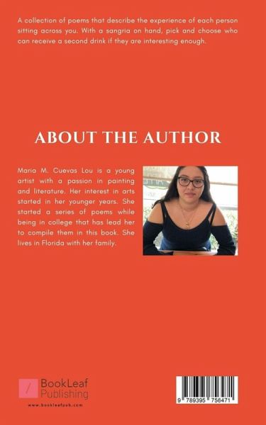 A collection of poems that describe the experience of each person sitting across you. With a sangria on hand, pick and choose who can receive a second drink if they are interesting enough.