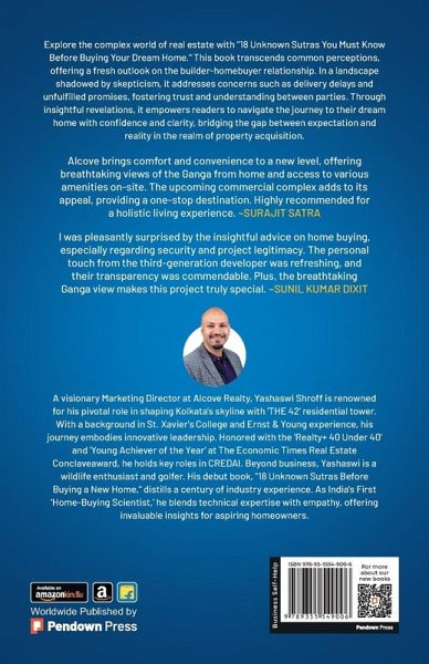 Explore the complex world of real estate with ""18 Unknown Sutras You Must Know Before Buying Your Dream Home."" This book transcends common perceptions, offering a fresh outlook on the builder-homebuyer relationship. In a landscape shadowed by skepticism, it addresses concerns such as delivery delays and unfulfilled promises, fostering trust and understanding between parties. Through insightful revelations, it empowers readers to navigate the journey to their dream home with confidence and clarity, bridging the gap between expectation and reality in the realm of property acquisition. A visionary Marketing Director at Alcove Realty, Yashaswi Shroff is renowned for his pivotal role in shaping Kolkata's skyline with 'THE 42' residential tower. With a background in St. Xavier's College and Ernst & Young experience, his journey embodies innovative leadership. Honored with the 'Realty+ 40 Under 40' award, he holds key roles in CREDAI. Beyond business, Yashaswi is a wildlife enthusiast and golfer. His debut book, ""18 Unknown Sutras Before Buying a New Home,"" distills a century of industry experience. As India's First 'Home-Buying Scientist,' he blends technical expertise with empathy, offering invaluable insights for aspiring homeowners.