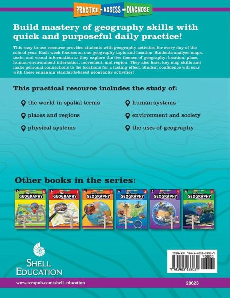 180 Days of Geography is a fun and effective daily practice workbook designed to help students learn about geography. This easy-to-use second grade workbook is great for at-home learning or in the classroom. The engaging standards-based activities cover grade-level skills with easy to follow instructions and an answer key to quickly assess student understanding. Each week students will explore a new topic focusing on map skills, applying information and data, and connecting what they have learned. Watch students build confidence as they learn about location, place, human-environment interaction, movement, and regions with these quick independent learning activities. Parents appreciate the teacher-approved activity books that keep their child engaged and learning. Great for homeschooling, to reinforce learning at school, or prevent learning loss over summer.Teachers rely on the daily practice workbooks to save them valuable time. The ready to implement activities are perfect for daily morning review or homework. The activities can also be used for intervention skill building to address learning gaps.