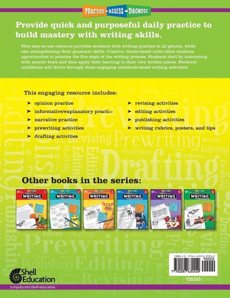 180 Days of Writing is a fun and effective daily Spanish practice workbook designed to help students become better writers. This easy-to-use kindergarten workbook is great for at-home learning or in the classroom. The engaging standards-based writing activities cover grade-level skills with easy to follow instructions and an answer key to quickly assess student understanding. Each week students are guided through the five steps of the writing process: prewriting, drafting, revising, editing, and publishing. Watch student confidence grow with daily writing, grammar, and language practice.Parents appreciate the teacher-approved activity books that keep their child engaged and learning. Great for homeschooling, to reinforce learning at school, or prevent learning loss over summer.Teachers rely on the daily practice workbooks to save them valuable time. The ready to implement activities are perfect for daily morning review or homework. The activities can also be used for intervention skill building to address learning gaps.