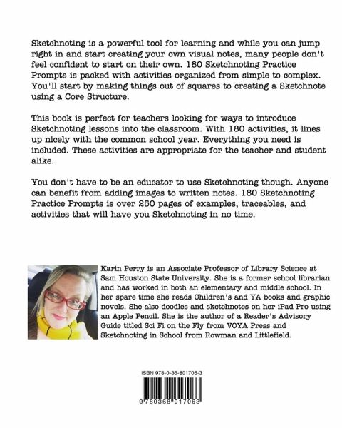 Sketchnoting is a powerful tool for learning and while you can jump right in and start creating visual notes, many people don't feel confident to start on their own. 180 Sketchnoting Practice Prompts is packed with activities organized from simple to complex. You'll start by making things out of squares to creating a Sketchnote using a Core Structure. This book is perfect for teachers looking for ways to introduce Sketchnoting lessons into the classroom. With 180 activities, it lines up nicely with the common school year. Everything you need is included. These activities are appropriate for the teacher and student alike. You don't have to be an educator to use Sketchnoting though. Anyone can benefit from adding images to written notes. 180 Sketchnoting Practice Prompts is over 250 pages of examples, traceables, and activities that will have you Sketchnoting in no time.
