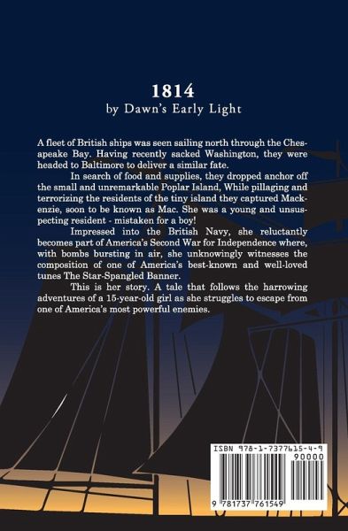 A fleet of British ships was seen sailing north through the Chesapeake Bay. Having recently sacked Washington, they were headed to Baltimore to deliver a similar fate.In search of food and supplies, they dropped anchor off the small and unremarkable Poplar Island. While pillaging and terrorizing the residents of the tiny island, they captured Mackenzie, soon to be known as Mac. She was a young and unsuspecting resident - mistaken for a boy!Impressed into the British Navy, she reluctantly becomes part of America's Second War for Independence where, with bombs bursting in air, she unknowingly witnesses the composition of one of America's best-known and well-loved tunes, The Star-Spangled Banner.This is her story. A tale that follows the harrowing adventures of a 15-year-old girl as she struggles to escape from one of America's most powerful enemies.
