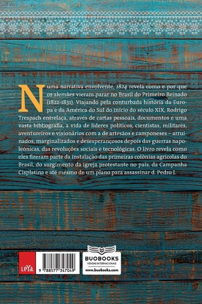 Como os alemães vieram parar no Brasil, criaram as primeiras colônias, participaram do surgimento da igreja protestante e de um plano para assassinar d. Pedro I Em 1824, o historiador e escritor Rodrigo Trespach narra a chegada dos imigrantes de língua alemã ao Brasil e a formação das primeiras colônias no século XIX. O livro mostra como os alemães participaram da instalação das nossas primeiras colônias agrícolas, do surgimento da igreja protestante brasileira e até mesmo de um plano para assassinar d. Pedro I. Por meio de documentos e diários de viagem, Trespach insere uma vasta pesquisa histórica numa envolvente narrativa que conta uma história fascinante e pouco conhecida sobre a formação do Brasil.