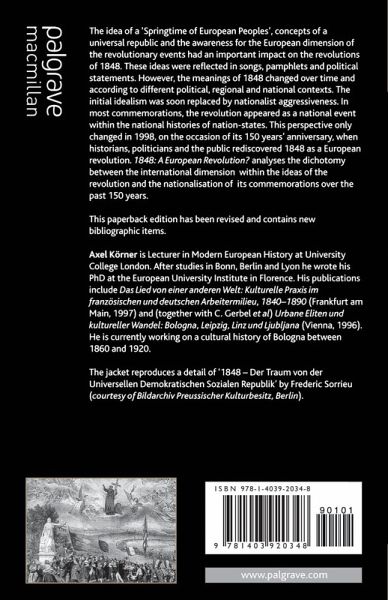 This book is among the rare contributions to the 150th anniversary of 1848 which takes a completely new, theoretically informed approach. Instead of a traditional social or political history, the authors analyse the dichotomy between the international dimension in the ideas of the revolution and the nationalisation of memories in its commemorations over the past 150 years. The book offers original research on the history of European ideas and takes part in the current debate about the relationship between history and memory.