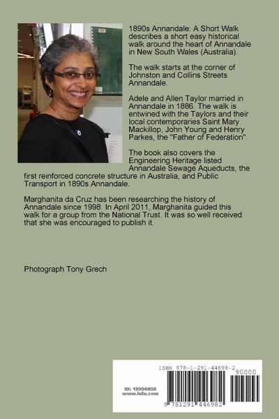 1890s Annandale: A Short Walk describes a short easy historical walk around the heart of Annandale, NSW, Australia. The walk starts at the corner of Johnston and Collins Streets Annandale. Adele and Allen Taylor married in Annandale in 1886. The walk is entwined with the Taylors and their local contemporaries Saint Mary Mackillop, John Young and Henry Parkes, the ""Father of Federation"". The book also covers the Engineering Heritage listed Annandale Sewage Aqueducts, the first reinforced concrete structure in Australia, and Public Transport in 1890s Annandale. Marghanita da Cruz has been researching the history of Annandale since 1998. In April 2011, she guided this walk for a group from the National Trust. It was so well received that she was encouraged to publish it.