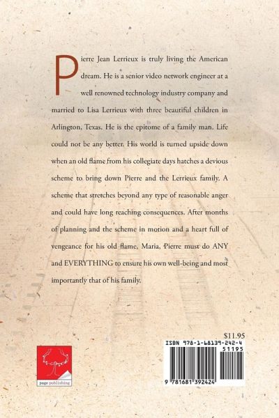 Pierre Jean Lerrieux is truly living the American dream. He is a senior video network engineer at a well renowned technology industry company and married to Lisa Lerrieux with three beautiful children in Arlington, Texas. He is the epitome of a family man. Life could not be any better. His world is turned upside down when an old flame from his collegiate days hatches a devious scheme to bring down Pierre and the Lerrieux family. A scheme that stretches beyond any type of reasonable anger and could have long reaching consequences. After months of planning and the scheme in motion and a heart full of vengeance for his old flame, Maria, Pierre must do ANY and EVERYTHING to ensure his own well-being and most importantly that of his family.