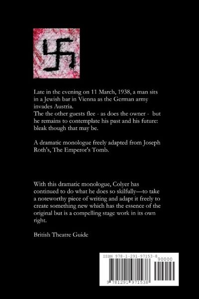 Late in the evening on 11 March, 1938, a man sits in a Jewish bar in Vienna as the German army invades Austria. The other guests flee, as does the owner, but he remains to contemplate his past and his future - bleak though that may be. "With this dramatic monologue, Colyer has continued to do what he does so skilfully-to take a noteworthy piece of writing and adapt it freely to create something new which has the essence of the original but is a compelling stage work in its own right." British Theatre Guide. Freely adapted from Joseph Roth's novel, The Emperor's Tomb.