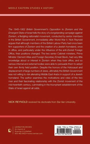 The 1945-1952 British Government's Opposition to Zionism and the Emergent State of Israel examines the British Government's role in Palestine after World War II when it was still under the British Mandate. It looks at the considerable obstacles and events leading to the eventual establishment of the state of Israel.