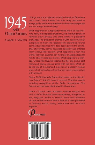 What happened in Europe after World War II to the returning Jews, the displaced Swabians, and the Hungarians in Felvidék (now Slovakia) who were victims of population exchange? The great social dramas of 20th-century Central Europe are as much the subject of this disturbing volume as individual destinies: how does desire stretch the boundaries of everyday norms; how does it destroy lives or forces them to leave their country? What happens to a man who wishes to live as a woman but his chosen vocation requires him to observe religious norms? What happens to a teenager whose first love, his teacher, has her eye on his best friend and plays a vicious game with the boys? What will be the fate of the deaf and mute son of a peasant woman who, in his final exclusion from human society, seeks solace with animals?