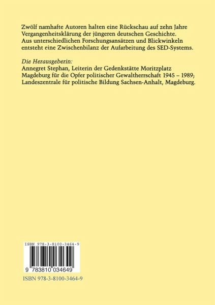 Zwölf namhafte Autoren halten eine Rückschau auf zehn Jahre Vergangenheitsklärung der jüngeren deutschen Geschichte. Aus unterschiedlichen Forschungsansätzen und Blickwinkeln entsteht eine Zwischenbilanz der Aufarbeitung des SED-Systems.