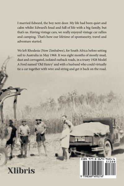 I married Edward, the boy next door. My life had been quiet and calm whilst Edward's loud and full of life with a big family, but that's us. Having vintage cars, we really enjoyed vintage car rallies and camping. That's how our lifetime of spontaneity, travel and adventure started. We left Rhodesia (Now Zimbabwe), for South Africa before setting sail to Australia in May 1968. It was eight months of mostly mud, dust and corrugated, isolated outback roads, in a trusty 1928 Model A Ford named 'Old Henry' and with a husband who could virtually tie a car together with wire and string and get it back on the road.