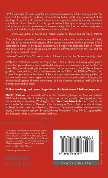An accessible textbook that summarizes the results of the intensive research of the past couple of years and provides a gateway to information on the various analytical dimensions and national differences of the protest movements . . . With its comprehensive coverage of a broad range of European countries, its analytical focus on transnational connections and the clear and accessible structure of the individual chapters, this book will be core reading for everyone who wants to study contexts, events and the impact of the revolt of 1968. - The Sixties: A Journal of History, Politics and Culture Klimke and Scharloth's contribution has good reasons to stand out from the rest. The first and maybe foremost reason is their ability to facilitate new insights into 'the long 1960s' on the European continent, thus showing us how far we are from exhausting the issue . . . a superb book, both for non-specialists who want to know about contentious politics in 1960s Europe and researchers of the subject." - International Review of Social History "The handbook is particularly interesting for those looking for a quick introduction to the topic or an overview of the most important events." - Sehepunkte " 1968 in Europe offers an insightful and provocative overview for this turning point in the history of the continent. The book is transnational history at its best - an account of the ideological, social, and political forces across European societies that shook traditional authority structures. The book is also good national history - narrating the key events and transformations in nearly every European society. Scholars and students of postwar Europe will find this book invaluable as a foundational text. It tells the pan-European story of 1968 and opens many new avenues for future research." - Jeremi Suri, author of Power and Protest: Global Revolution and the Rise of Détente "This book is a courageous effort to contribute to a new trend in the history of 1968, the study of the transnational aspects of the protest movements. It offers some basis for a comparative history in European perspective, a Europe that embraces both its Western and Eastern parts, while recognising the striking differences between the two and the specificity of national issues. Many national cases are examined, but also transnational movements such as the women's movement and its problematic link to 1968. Thus the dimension of a truly European 1968 emerges against a global background." - Luisa Passerini (Turin/Florence), author of Autobiography of a Generation: Italy, 1968