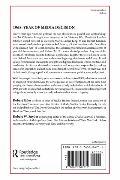 Preface Part I: War 1. The Turning Point That Wasn't Daniel Hallin 2. Justified Doubts David Halberstam 3. Unfortunate Stupidity Winant Sidle Part II: Politics 4. Reassessing the Winners and Losers Jules Witcover 5. Dumping Johnson Curtis Gans 6. Good Copy Dan T. Carter 7. Enemas for Elephants Robert Shogan Part III: Race 8. The Kerner Legacy Pamela Newkirk 9. Goals for the Year 2000 and Beyond Loren Ghiglione 10. Optimism, Pessimism and the Kerner Report Randall Kennedy Part IV: Protest 11. A Generational Divide at Columbia Robert Friedman 12. A New Birth in France Claude-Jean Bertrand 13. The Czech Press-Fighting for Change Madeleine K. Albright 14. The Nightmare of Tlatelolco Raymundo Riva Palacio Part V: Cultures, 1968 and 1998 15. The Transformation of Time Magazine James L. Baughman 16. The Best of Times Richard Reeves 17. Climbing Down from Olympus Andrew Tyndall 18. Finding Ourselves in the New Journalism John J. Pauly 19. An Unexpected Aeratio Todd Gitlin 20. From Underground to Alternative Abe Peck Part VI: 1968 in Books 21. Heresies of Liberalism Godfrey Hodgson For Further Reading Index