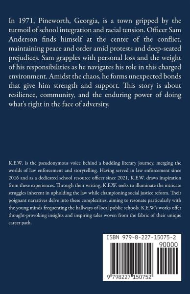 In 1971, Pineworth, Georgia, is a town gripped by the turmoil of school integration and racial tension. Officer Sam Anderson finds himself at the center of the conflict, maintaining peace and order amid protests and deep-seated prejudices. Sam grapples with personal loss and the weight of his responsibilities as he navigates his role in this charged environment. Amidst the chaos, he forms unexpected bonds that give him strength and support. This story is about resilience, community, and the enduring power of doing what's right in the face of adversity.