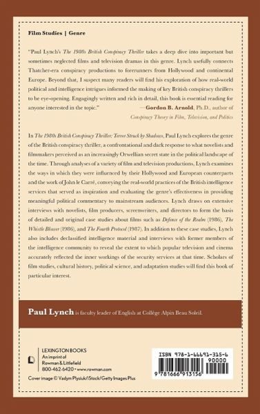 In this book, Paul Lynch explores the genre of the British conspiracy thriller, a confrontational and dark response to what novelists and filmmakers perceived as an increasingly Orwellian secret state in the political landscape of the time. Through analyses of a variety of film and television productions, Lynch examines the ways in which they were influenced by their Hollywood and European counterparts and the work of John le Carré, conveying the real-world practices of the British intelligence services that served as inspiration and evaluating the genre's effectiveness in providing meaningful political commentary to mainstream audiences. Lynch draws on extensive interviews with novelists, film producers, screenwriters, and directors to form the basis of detailed and original case studies about films such as Defence of the Realm (1986), The Whistle Blower (1986), and The Fourth Protocol (1987). In addition to these case studies, Lynch also includes declassified intelligence material and interviews with former members of the intelligence community to reveal the extent to which popular television and cinema accurately reflected the inner workings of the security services at that time. Scholars of film studies, cultural history, political science, and adaptation studies will find this book of particular interest.