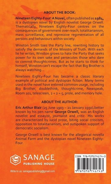 Nineteen Eighty-Four: A Novel, often published as 1984, is a dystopian novel.A startling and haunting novel, 1984 creates an imaginary world that is completely convincing from start to finish. No one can deny the novel's hold on the imaginations of whole generations, or the power of its admonitions-a power that seems to grow, not lessen, with the passage of time.