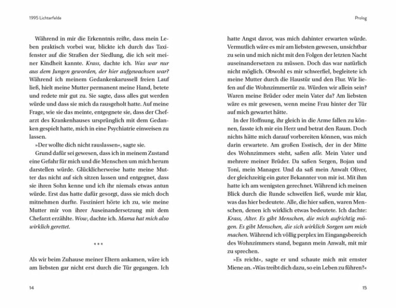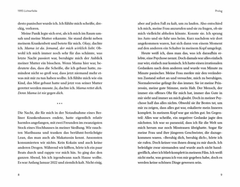 1995 kommt Hussein Akkouche als viertes von sechs Kindern einer Familie mit libanesischen Wurzeln in einer kalten, verschneiten Winternacht zur Welt. Aufgewachsen in den grauen Straßen von Berlin-Lichterfelde, muss er sich schon früh unter Älteren behaupten und trifft mit 13 Jahren eine Entscheidung, die sein Leben für immer verändert: Er beginnt zu rappen.Heute kennt ganz Deutschland Hussein unter dem Namen Samra. In seiner Autobiografie lässt er Erfolge und Rückschläge Revue passieren, blickt auf die von Krieg und Armut geprägte Vergangenheit seiner Familie zurück und setzt sich schonungslos ehrlich damit auseinander, wie die Schattenseiten des Musikgeschäfts ihn beinahe in den Suizid trieben.Es ist die bewegende Geschichte eines Jungen aus dem Herzen des Blocks, der früh auf eigenen Beinen stehen musste. Und der in jungen Jahren lernte, allen Widrigkeiten zu trotzen, die das Leben für ihn bereithält.