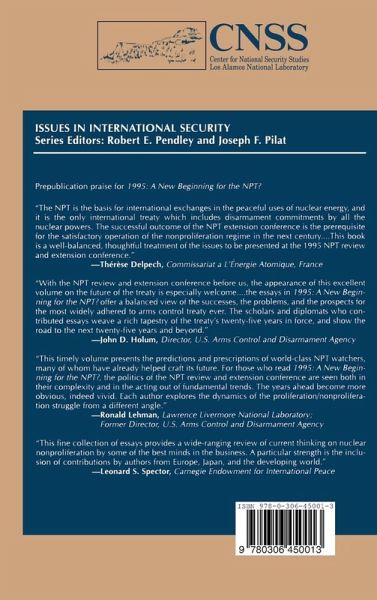 Introduction. Nonproliferation Organizations and Regimes beyond 1995 (R.M. Timerbaev). Nuclear Arms Control in the Postcold War Era (R. Imai). Toward a Universal Framework of Nuclear Restraint (M.A. Khan). The NPT's Prospects (J.F. Pilat). The Last Nuclear Summit? (M. Reiss). 1995: A Time for Optimism? (B. Sanders). India and the NPT after the Cold War (R.G.C. Thomas). Perspectives of Nonproliferation: A View from Russia (O.A. Grinevsky). The Future of the NPT: A German Perspective (J. Krause). Beyond 1995: The NPT and Europe (H. Müller). The NPT, the Treaty of Tlatelolco, and the Future of Nonproliferation (J.R. Redick). Avoiding Amendment of the NPT (C.N. Van Doren). What Happens to Safeguards if the NPT Goes? (D. Fischer). Does the NPT Matter? (L. Scheinman). Appendix: Toward 1995: United Nations Documents Relating to the Establishment and Functioning of the NPT, 1959-1993. Index.