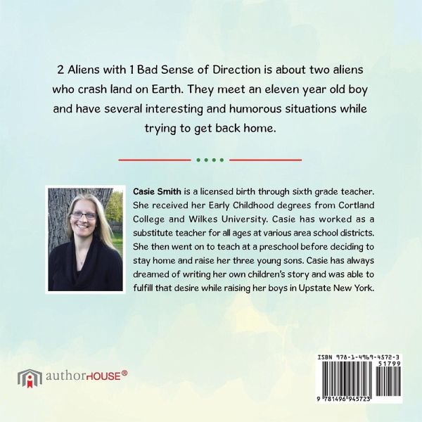 2 Aliens with 1 Bad Sense of Direction is about two aliens who crash land on Earth. They meet an eleven year old boy and have several interesting and humorous situations while trying to get back home.