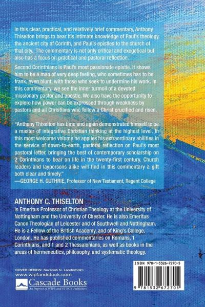 In this clear, practical, and relatively brief commentary, Anthony Thiselton brings to bear his intimate knowledge of Paul's theology, the ancient city of Corinth, and Paul's epistles to the church of that city. The commentary is not only critical and exegetical, but also has a focus on practical and pastoral reflection. Second Corinthians is Paul's most passionate epistle. It shows him to be a man of very deep feeling, who sometimes has to be frank, even blunt, with those who seek to undermine his work. In this commentary, we see the inner turmoil of a devoted missionary pastor and apostle. We also have the opportunity to explore how power can be expressed through weakness by pastors and all Christians who follow a Christ crucified and risen.