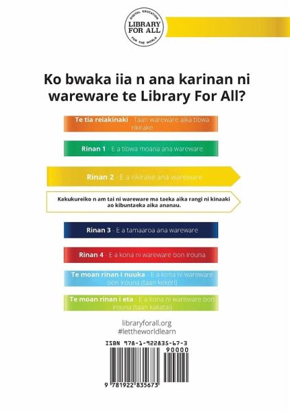Finding food is tricky for one ant on his own. He needs to find some friends! But can 20 busy little ants learn to work as a team? E kaangaanga kakaaean kanan te kinnongo n tii ngaia. E kainnanoia bwa e na buokaki irouia raoraona! Ma a kona uangaun kinnongo aika a uareereke ao n tabetabe n reireiniia ni mmwakuri bwa teuana te tiim? Your purchase of this book supports Library For All in its mission to make knowledge available to all, equally.