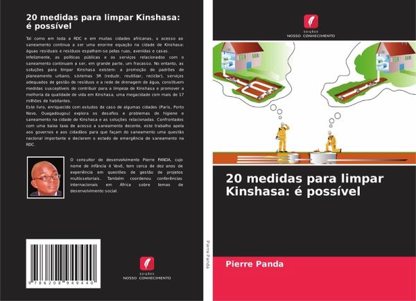 Tal como em toda a RDC e em muitas cidades africanas, o acesso ao saneamento continua a ser uma enorme equação na cidade de Kinshasa: águas residuais e resíduos espalham-se pelas ruas, avenidas e casas.Infelizmente, as políticas públicas e os serviços relacionados com o saneamento continuam a ser, em grande parte, um fracasso. No entanto, as soluções para limpar Kinshasa existem: a promoção de padrões de planeamento urbano, sistemas 3R (reduzir, reutilizar, reciclar), serviços adequados de gestão de resíduos e a rede de drenagem de água, constituem medidas susceptíveis de contribuir para a limpeza de Kinshasa e promover a melhoria da qualidade de vida em Kinshasa, uma megacidade com mais de 17 milhões de habitantes.Este livro, enriquecido com estudos de caso de algumas cidades (Paris, Porto Novo, Ouagadougou) explora os desafios e problemas de higiene e saneamento na cidade de Kinshasa e as soluções relacionadas. Confrontados com uma baixa taxa de acesso a saneamento decente, este trabalho apela aos governos e aos cidadãos para que façam do saneamento uma questão nacional importante e declarem o estado de emergência de saneamento na RDC.