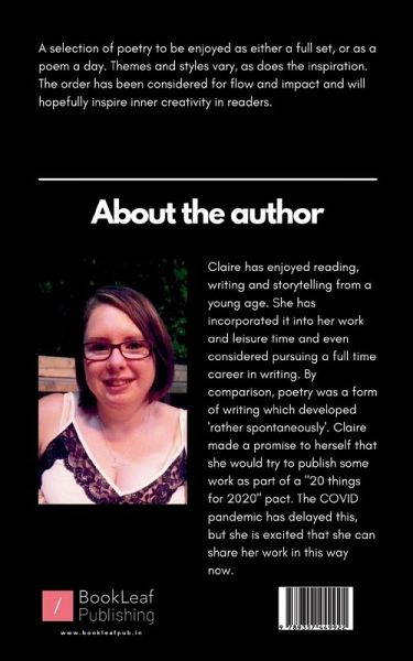 Claire has enjoyed reading, writing and storytelling from a young age. She has incorporated it into her work and leisure time and even considered pursuing a full time career in writing. By comparison, poetry was a form of writing which developed 'rather spontaneously'. Claire made a promise to herself that she would try to publish some work as part of a ""20 things for 2020"" pact. The COVID pandemic has delayed this, but she is excited that she can share her work in this way now.