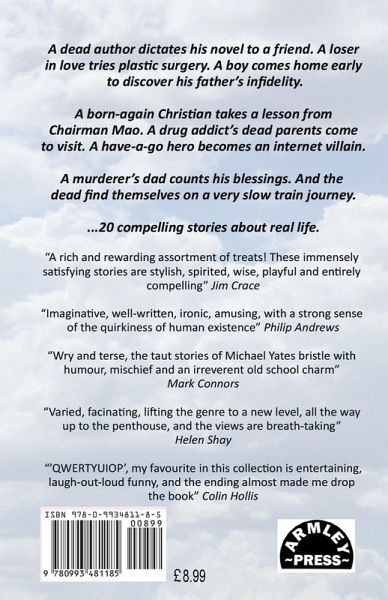 A dead author dictates his novel to a friend. A loser in love tries plastic surgery. A boy comes home early to discover his father’s infidelity. A born-again Christian takes a lesson from Chairman Mao. A drug addict’s dead parents come to visit. A have-a-go hero becomes an internet villain. A murderer’s dad counts his blessings. And the dead find themselves on a very slow train journey. Amusing and ironic, scary and sad. Just half a dozen of a score of short stories in 20 Stories High by Michael Yates. "A rich and rewarding assortment of treats! These immensely satisfying stories are stylish, spirited, wise, playful and entirely compelling." – Jim Crace, prize-winning novelist "This is an imaginative, well-written and entertaining collection of tales of the unexpected. The style is consistently ironic and amusing and the author explores the modern world from a variety of oblique and unusual angles, impressing the reader with a strong sense of the quirkiness of human existence." – Philip Andrews, thriller writer and lecturer in journalism "Wry and terse, the taut stories of Michael Yates bristle with humour, mischief and an irreverent old school charm. At times profound, at others surreal, here is a writer at play with humanity and ideologies, and he dresses to the left. Suits me, Sir." – Mark Connors award-winning performance poet, and novelist "This varied and fascinating collection lifts the genre to a new level, all the way up to the penthouse, and the views are breath-taking." – Helen Shay, writer, dramatist, Society of Authors’ Poetry and Spoken Word Group Committee "The diversity is a delight. In ‘Terrordactyl’, a simple fantasy parody turns into a thought provoking allegory. ‘The Audit of Souls’ is a supernatural tale with a genuinely chilling element. ‘QWERTYUIOP’, my favourite amongst this collection, is entertaining, laugh-out-loud funny, and the ending almost made me drop the book." – Colin Hollis, crime and fantasy author.