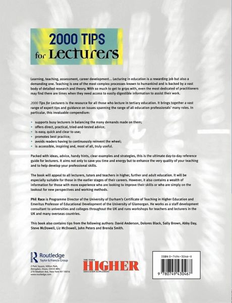 Brings together a range of expert tips and guidance for all those lecturing and teaching in higher education. With ideas on all aspects of HE teaching, it covers a range of issues that can crop up in daily working life, and is both a lifeline to new teachers and a handy sourcebook and refresher for more experienced educators.