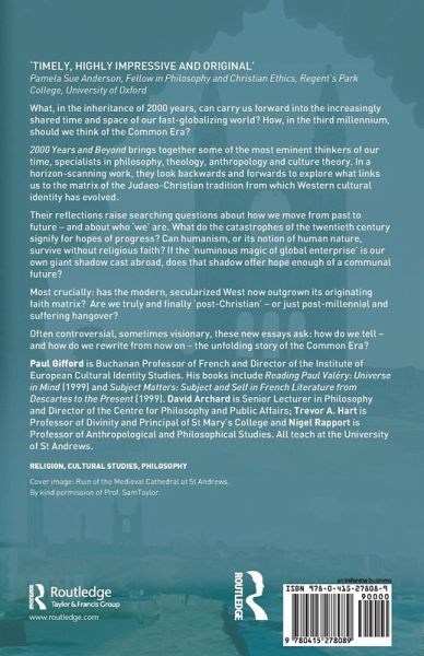 2000 Years and Beyond brings together some of the most eminent thinkers of our time - specialists in philosophy, theology, anthropology and cultural theory. In a horizon-scanning work, they look backwards and forwards to explore what links us to the matrix of the Judaeo-Christian tradition from which Western cultural identity has evolved. Their plural reflections raise searching questions about how we move from past to future - and about who 'we' are. What do the catastrophes of the twentieth century signify for hopes of progress? Can post - Enlightment humanism and its notion of human nature survive without faith? If the 'numinous magic global capitalism' is our own giant shadow cast abroad, does that shadow offer hope enough of a communal future? Has the modern, secularized West now outgrown its originating faith matrix? Often controversial and sometimes visionary, these seven new essays ask: how do we tell - and rewrite - the story of the Common Era? Introduced by Paul Gifford, and discussed in a lively dialogic conclusion, they add their distinctive voices to a debate of profound and urgent topicality.