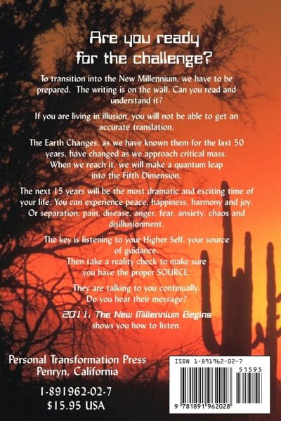 Information and message about the present and future. What we face entering into the new Millennium. How is government control going to effect us. The battle for our mind. The battle for clarity in our own decisions. How will the future unfold? Future Predictions. Are you ready to take responsibility and control over your life now? Revised updated edition for Sepember 2003
