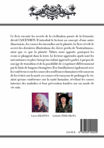 Ce livre raconte les secrets de la civilisation passée de la Lémurie, décrit l'ASCENSION. Il introduit le lecteur au concept "d'une autre dimension", les causes des incendies sur la planète.