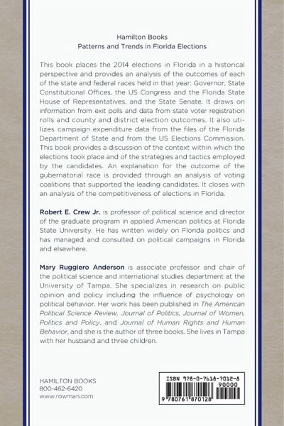 This book offers a comprehensive description and analysis of the conduct and outcome of the Florida elections in 2014; the race for Governor, for state constitutional offices, for the US Congress and for the Florida State Legislature. It compares these elections to their predecessors.
