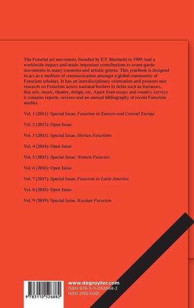 Yearbook 2017 explores this plurality of Futurisms and the cultural traditions that influenced them. Contributions focus on the intertextual character of Latin American Futurisms, interpret works of literature and fine arts within their local setting, consider modes of production and consumption within each culture as well as the forms of interaction with other Latin American and European centres. 14 essays locate Futurism within the complex network of cultural exchange, unravel the Futurist contribution to the complex interrelations between local and the global cultures in Latin America and reveal the dynamic dialogue as well as the multiple forms of cross-fertilization that existed amongst them.