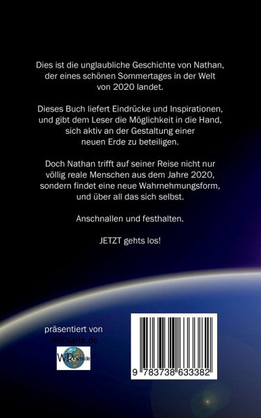 Dies ist die unglaubliche Geschichte von Nathan, der eines schönen Sommertages in der Welt von 2020 landet. Dieses Buch liefert Eindrücke und Inspirationen, und gibt dem Leser die Möglichkeit in die Hand, sich aktiv an der Gestaltung einer neuen Erde zu beteiligen. Doch Nathan trifft auf seiner Reise nicht nur völlig reale Menschen aus dem Jahre 2020, sondern findet eine neue Wahrnehmungsform, und über all das sich selbst.Anschnallen und festhalten.JETZT gehts los!