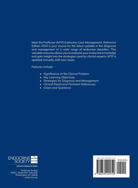 2020 Endocrine Case Management: Meet the Professor (MTP) Reference Edition is a healthcare professional's source for the latest updates in the diagnosis and management of a wide range of endocrine disorders. This valuable resource allows healthcare professionals to evaluate their endocrine knowledge and gain insight into the strategies used by clinical experts. CME, MOC, online module not included. Updated annually. Features include: ¿ Significance of the Clinical Problem ¿ Key Learning Objectives ¿ Strategies for Diagnosis and Management ¿ Clinical Pearls and Pertinent References ¿ Cases and Questions