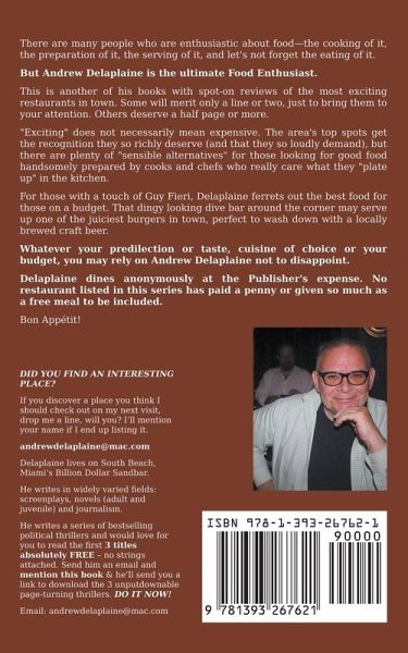 There are many people who are enthusiastic about food--the cooking of it, the preparation of it, the serving of it, and let's not forget the eating of it. But Andrew Delaplaine is the ultimate Food Enthusiast. This is another of his books with spot-on reviews of the most exciting restaurants in town. Some will merit only a line or two, just to bring them to your attention. Others deserve a half page or more. "Exciting" does not necessarily mean expensive. The area's top spots get the recognition they so richly deserve (and that they so loudly demand), but there are plenty of "sensible alternatives" for those looking for good food handsomely prepared by cooks and chefs who really care what they "plate up" in the kitchen. For those with a touch of Guy Fieri, Delaplaine ferrets out the best food for those on a budget. That dingy looking dive bar around the corner may serve up one of the juiciest burgers in town, perfect to wash down with a locally brewed craft beer. Whatever your predilection or taste, cuisine of choice or your budget, you may rely on Andrew Delaplaine not to disappoint. Delaplaine dines anonymously at the Publisher's expense. No restaurant listed in this series has paid a penny or given so much as a free meal to be included. Bon Appétit!