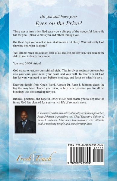 Do you still have your Eyes on the Prize? There was a time when God gave you a glimpse of the wonderful future He has for you—plans to bless you and others through you. But these days you’re not so sure: it all seems a bit blurry. Was that really God showing you what is ahead? Yes! But to reach out and lay hold of all that He has for you, you need to be able to see it clearly once more. You need 20/20 vision! God wants to restore your spiritual sight. That involves not just your eyes but also your ears, your mind, your heart, and your will. To receive what God has for you, you need to see, believe, embrace, and focus on what He says. Drawing deeply from God’s Word, Apostle Dr. Reno I. Johnson clears the fog that may have clouded your view, to help better position you for all the blessings that are stored up for you. Biblical, practical, and hopeful, 20/20 Vision will enable you to step into the future God has planned for you—a rich life of so much more.