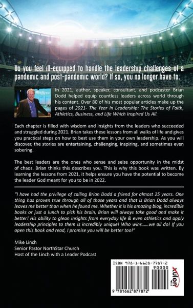 Do you feel ill-equipped to handle the leadership challenges of a pandemic and post-pandemic world? If so, you no longer have to. In 2021, author, speaker, consultant, and podcaster Brian Dodd helped equip countless leaders across world through his content. Over 80 of his most popular articles make up the pages of 2021- The Year In Leadership: The Stories of Faith, Athletics, Business, and Life Which Inspired Us All. Each chapter is filled with wisdom and insights from the leaders who succeeded and struggled during 2021. Brian takes these lessons from all walks of life and gives you practical steps on how to best use them in your own leadership. As you will discover, the stories are entertaining, challenging, inspiring, and sometimes even sobering. The best leaders are the ones who sense and seize opportunity in the midst of chaos. Brian thinks this describes you. This is why this book was written. By learning the lessons from 2021, it helps ensure you have the potential to become the leader God meant for you to be in 2022.
