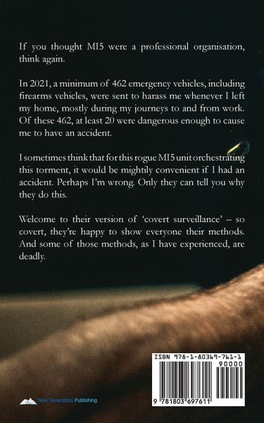If you thought MI5 were a professional organisation, think again. In 2021, a minimum of 462 emergency vehicles, including firearms vehicles, were sent to harass me whenever I left my home, mostly during my journeys to and from work. Of these 462, at least 20 were dangerous enough to cause me to have an accident. I sometimes think that for this rogue MI5 unit orchestrating this torment, it would be mightily convenient if I had an accident. Perhaps I'm wrong. Only they can tell you why they do this. Welcome to their version of 'covert surveillance' - so covert, they're happy to show everyone their methods. And some of those methods, as I have experienced, are deadly.