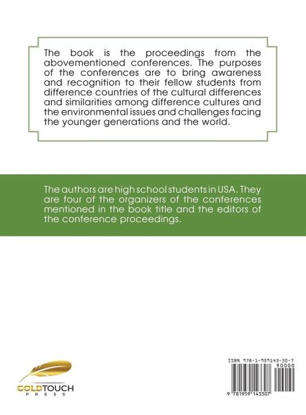 The book is the proceedings from the abovementioned conferences. The purposes of the conferences are to bring awareness and recognition to their fellow students from difference countries of the cultural differences and similarities among difference cultures and the environmental issues and challenges facing the younger generations and the world.