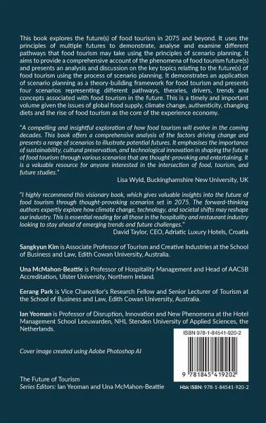 This book explores the future of food tourism in 2075 and beyond. It uses the principles of multiple futures to demonstrate, analyse and examine different paths that food tourism may take using scenario planning. It is timely given the issues of global food supply, climate change and the rise of food tourism as the core of the experience economy.