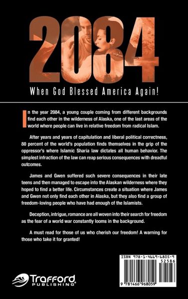 2084-When God Blessed America Again is a gripping story of a man and a woman who grew up under the iron fist of Islamic law in the United States of Islam, formerly known as the United States of America. By sheer force of will and population redistribution, the Islamic faith has now become the controlling force that dominates approximately 80 percent of the world's populations. James and Gwen, the two main characters, are raised in separate parts of the country. Each suffer through horrible family events brought on by the oppressive society, and each has sworn revenge! By totally separate circumstances, they find themselves in Alaska, one of the few areas of the globe that a person can live in "relative" freedom. They eventually find each other in the wilderness along with a group of people who also cherish the idea of freedom. 2084 is filled with intrigue, war, and romance. Not a book for the weak of heart!