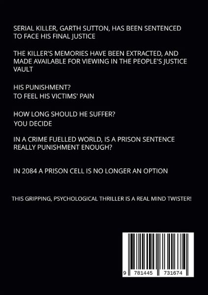Serial Killer, Garth Sutton has been sentenced to face his Final Justice. The killer's memories have been extracted and made available for viewing in the People's Justice Vault. His punishment? To feel his victims' pain. How long should he suffer? You decide. In a crime-fueled world is a prison sentence really punishment enough? In 2084 a prison cell is no longer an option. - This fast-paced psychological thriller is a real mind twister, with an ending you won't see coming... 2084 - Julie Clark