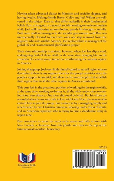 Having taken advanced classes in Marxism and socialist dogma, and having lived it, lifelong friends Barten Colby and Joel Wilbur are well-versed in the subject. Even so, they differ markedly in their fundamental beliefs. Bart, a rising star, is a staunch socialist tending toward communism while Joel, still harboring serious doubts, guards his thoughts carefully. Both were midlevel managers in the socialist government until Bart was unexpectedly elevated to level two, only one step removed from the oligarchs who rule satellite America. Joel replaced him as manager of the global life and environmental glorification project. Their close relationship is strained, however, when Joel lets slip a word, endangering both of them, while at the same time bringing him to the attention of a covert group intent on overthrowing the socialist regime in America. Joining that group, Joel soon finds himself tasked to surveil region nine to determine if there is any support there for the group's activities since the people's support is essential, and there are far more people in that hellish slum region than in all the other regions in America combined. This puts Joel in the precarious position of working for the regime while, at the same time, working to destroy it, all the while under close twenty-four-hour surveillance. One more slip could be lethal. But his efforts are rewarded when he not only falls in love with Celia Noel, the woman who enticed him to join the group, but is taken in by a struggling family and is befriended by two Christian ministers, laboring under threat of death, and an American expatriate who is trying to raise a clandestine army in region nine. Bart continues to make his mark as he meets and falls in love with Sara Comely, a classmate from his youth, and rises to the top of the International Socialist Democracy.