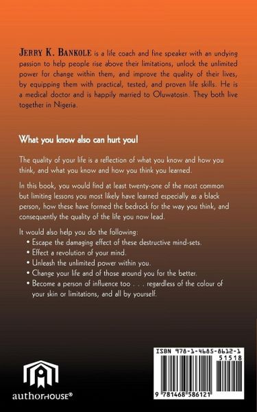 What you know also can hurt you! The quality of your life is a reflection of what you know and how you think, and what you know and how you think you learned. In this book, you would find at least twenty-one of the most common but limiting lessons you most likely have learned especially as a black person, how these have formed the bedrock for the way you think, and consequently the quality of the life you now lead. It would also help you do the following: ¿ Escape the damaging effect of these destructive mind-sets. ¿ Effect a revolution of your mind. ¿ Unleash the unlimited power within you. ¿ Change your life and of those around you for the better. ¿ Become a person of influence too . . . regardless of the colour of your skin or limitations, and all by yourself.